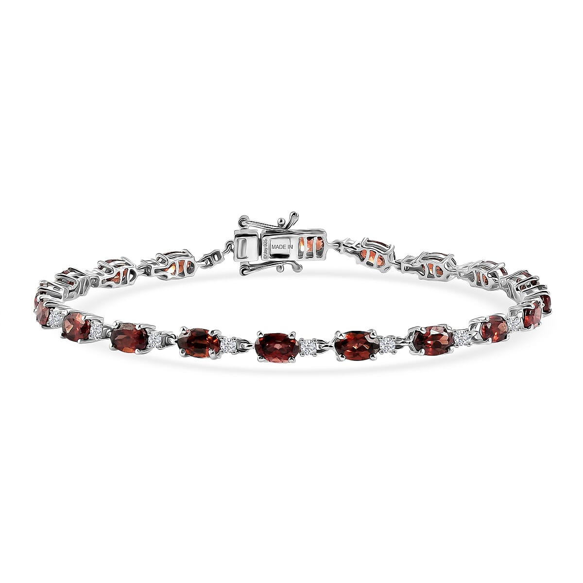 D'Joy AAA Red Zircon and White Zircon 15.25 ctw Sky Blue Sparkle Bracelet in Rhodium Over Sterling Silver (8.00 In) (Del. in 8-10 Days)