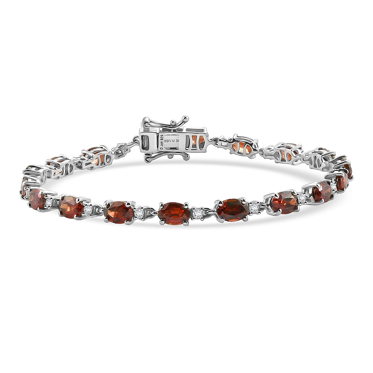 D'Joy AAA Red Zircon and White Zircon Line 13.90 ctw Bracelet in Rhodium Over Sterling Silver (7.25 In)
