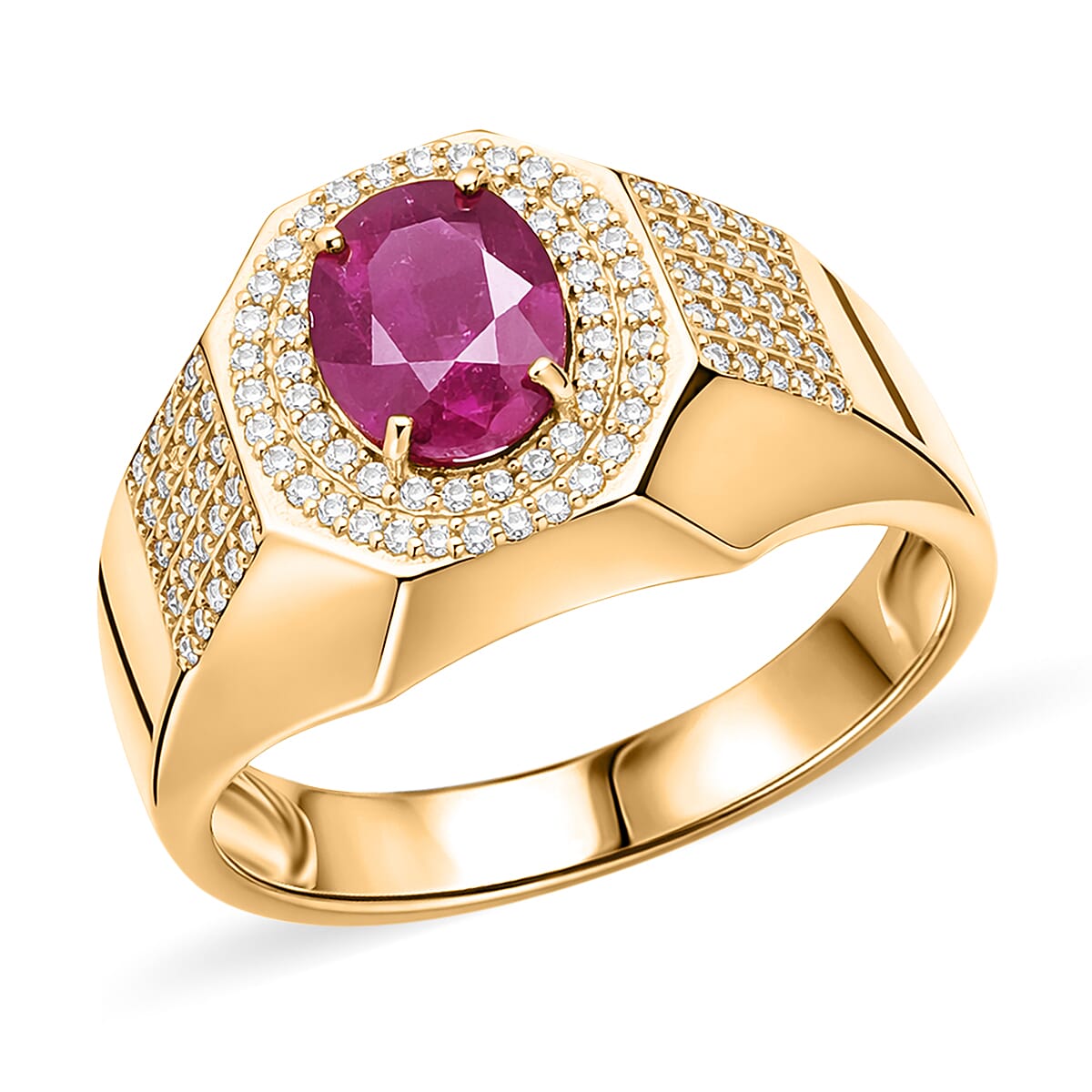 D'Joy AAA Royal Ruby and Moissanite 2.50 ctw Men's Ring in 18K Vermeil Yellow Gold Over Sterling Silver (Size 13.0)