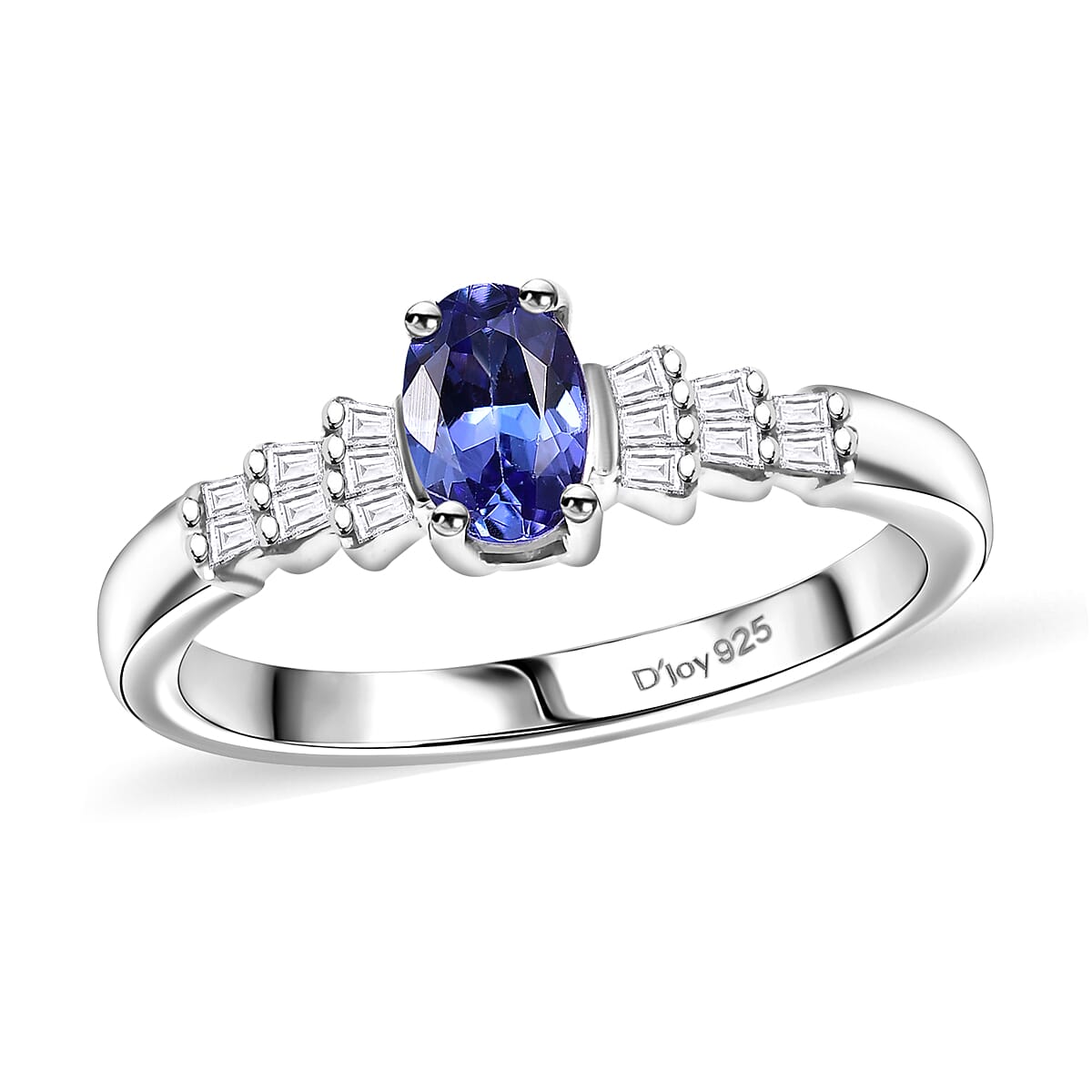 D'Joy AAA Tanzanite and Diamond 0.60 ctw Ballerina Ring in Rhodium Over Sterling Silver (Size 7.0)