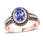 D'Joy AAA Tanzanite, Natural Champagne and White Diamond Double Halo Ring in 18K Vermeil Rose Gold Over Sterling Silver (Size 7.0) 1.60 ctw