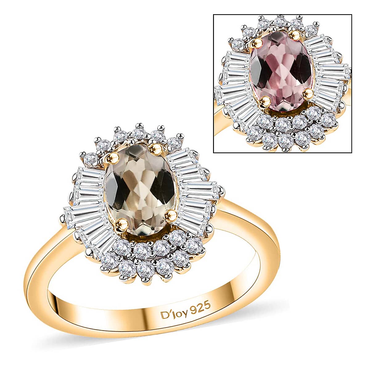 D'Joy AAA Turkizite and White Zircon 1.60 ctw Cosmic Bloom Ring in 18K Vermeil Yellow Gold Over Sterling Silver