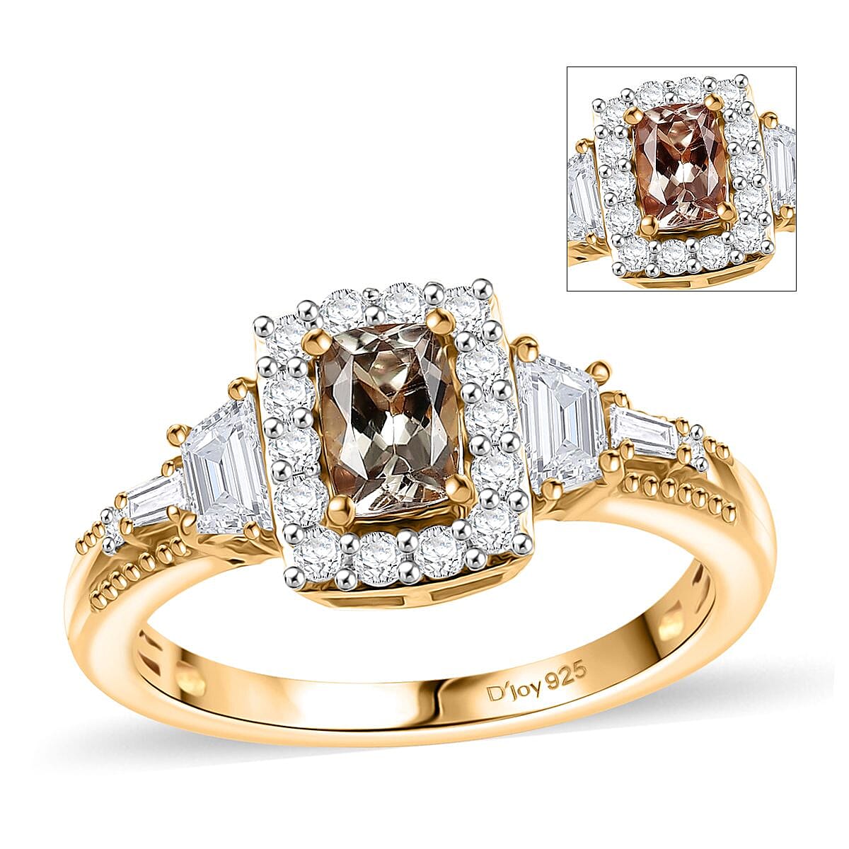 D'Joy AAA Turkizite and White Zircon 1.65 ctw Vintage Halo Ring in 18K Vermeil Yellow Gold Over Sterling Silver (Size 8.0)