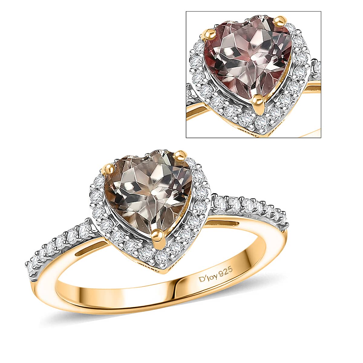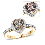D'Joy AAA Turkizite, Moissanite Heart Ring in 18K Vermeil YG Over Sterling Silver 1.85 ctw (Size 7.0)