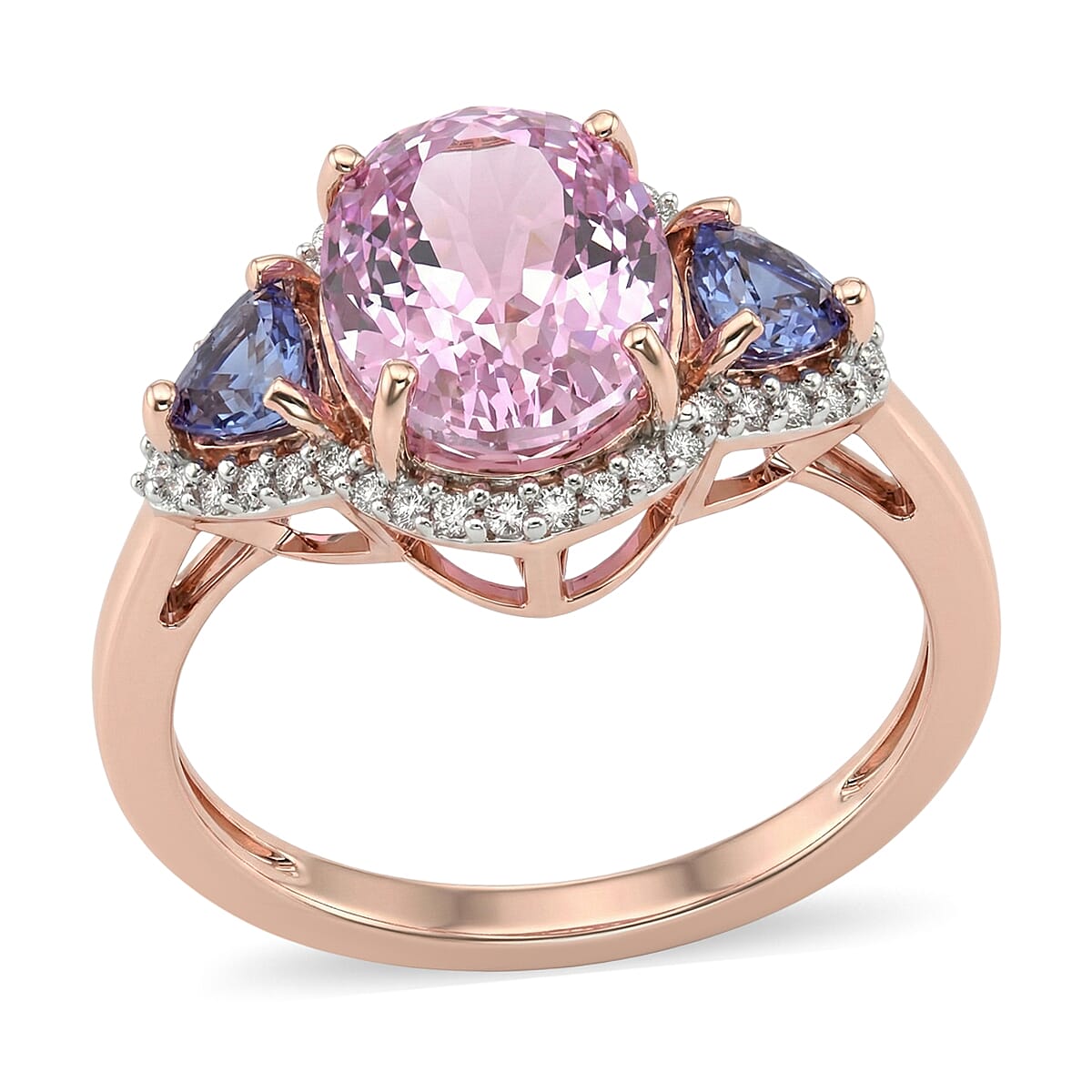 D'Joy AAAA Martha Rocha Kunzite, Multi Gemstone Ring in 18K Vermeil RG Over Sterling Silver (Size 10.0) 4.40 ctw