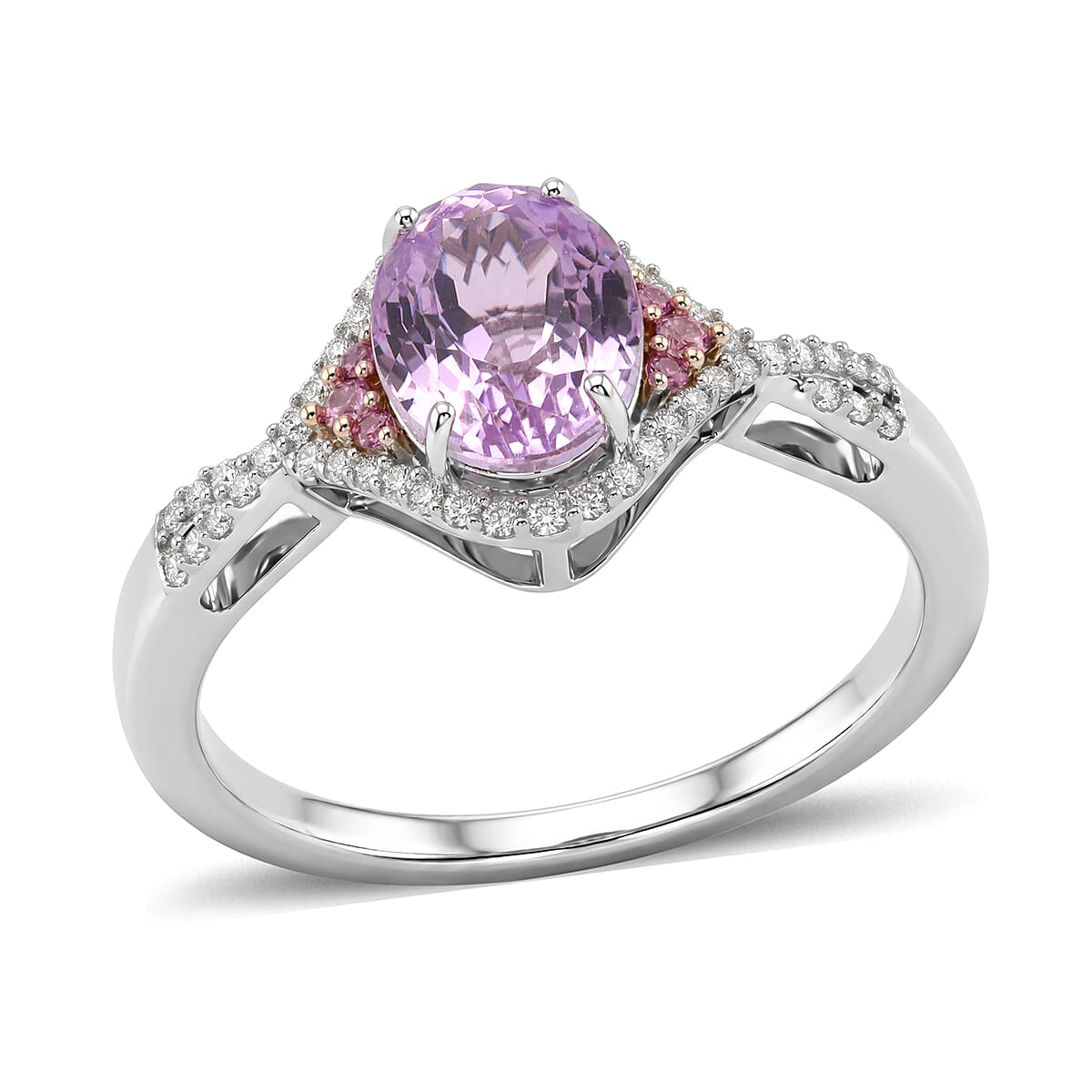 Celebrate your distinctive beauty with this D'Joy Patroke kunzite ring in sterling silver. The blush gemstone ring radiates gentle warmth through violet-purple hues and luminous accents. This unique infinity ring reflects your individuality with refined brilliance and graceful presence.