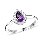 D'Joy African Amethyst and White Zircon 0.65 ctw Ring in Rhodium Over Sterling Silver (Size 8.0)