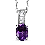 D'Joy African Amethyst and White Zircon 0.80 ctw Pendant Necklace in Rhodium Over Sterling Silver 20 Inches