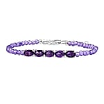 D'Joy African Amethyst Beaded Bracelet in Sterling Silver (6.50-8.00In) 10.90 ctw