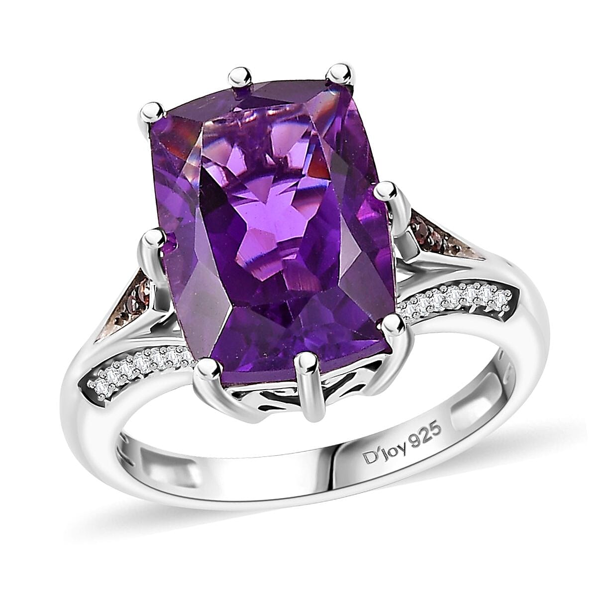 D'Joy African Amethyst, Brown and White Zircon 7.00 ctw Split Shank Ring in Rhodium Over Sterling Silver (Size 7.0)
