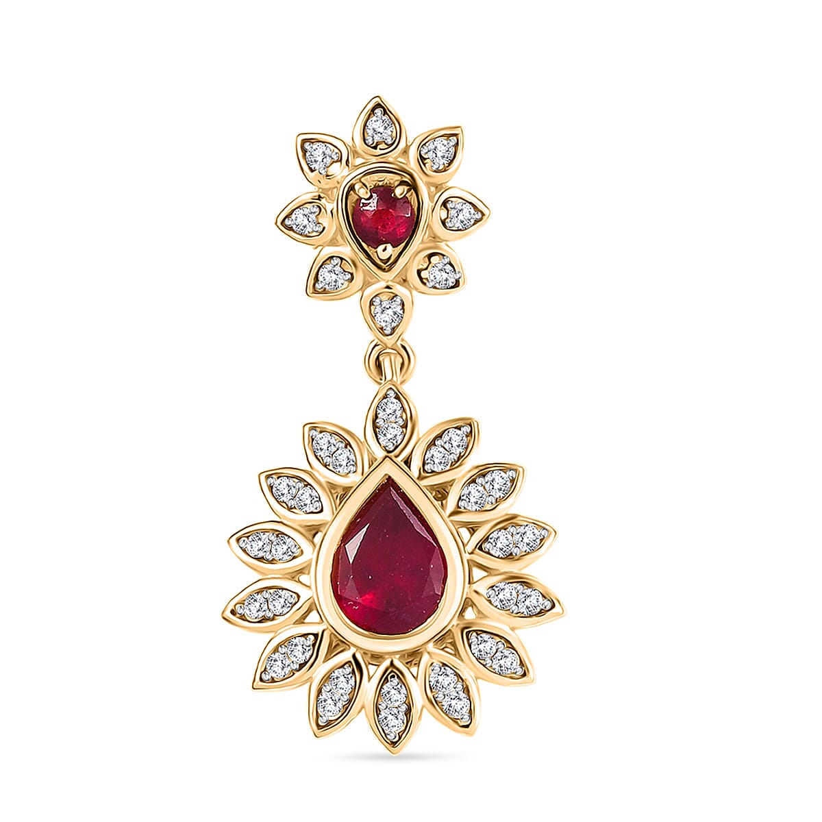 D'Joy African Ruby and White Zircon 2.30 ctw Pendant Without Chain in 18K YG Over Sterling Silver