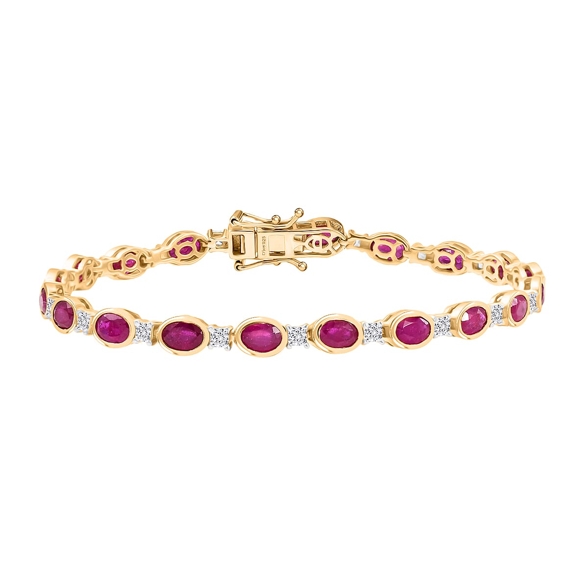 D'Joy African Ruby (FF) and Moissanite 14.00 ctw Bracelet in 18K Vermeil YG and Rhodium Over Sterling Silver (8.00 In)