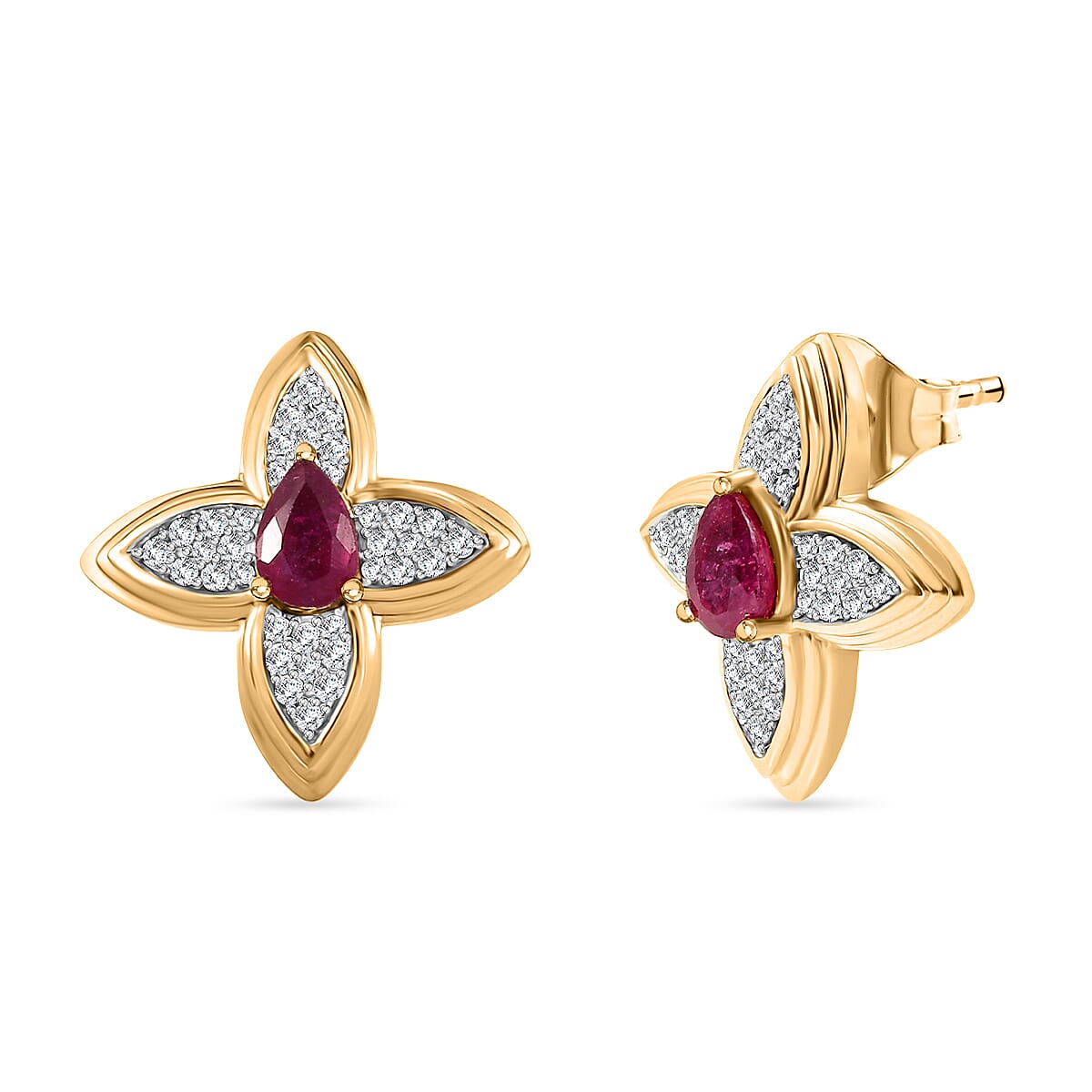 D'Joy African Ruby (FF) and White Zircon 1.80 ctw Earrings in 18K Vermeil Yellow Gold Over Sterling Silver