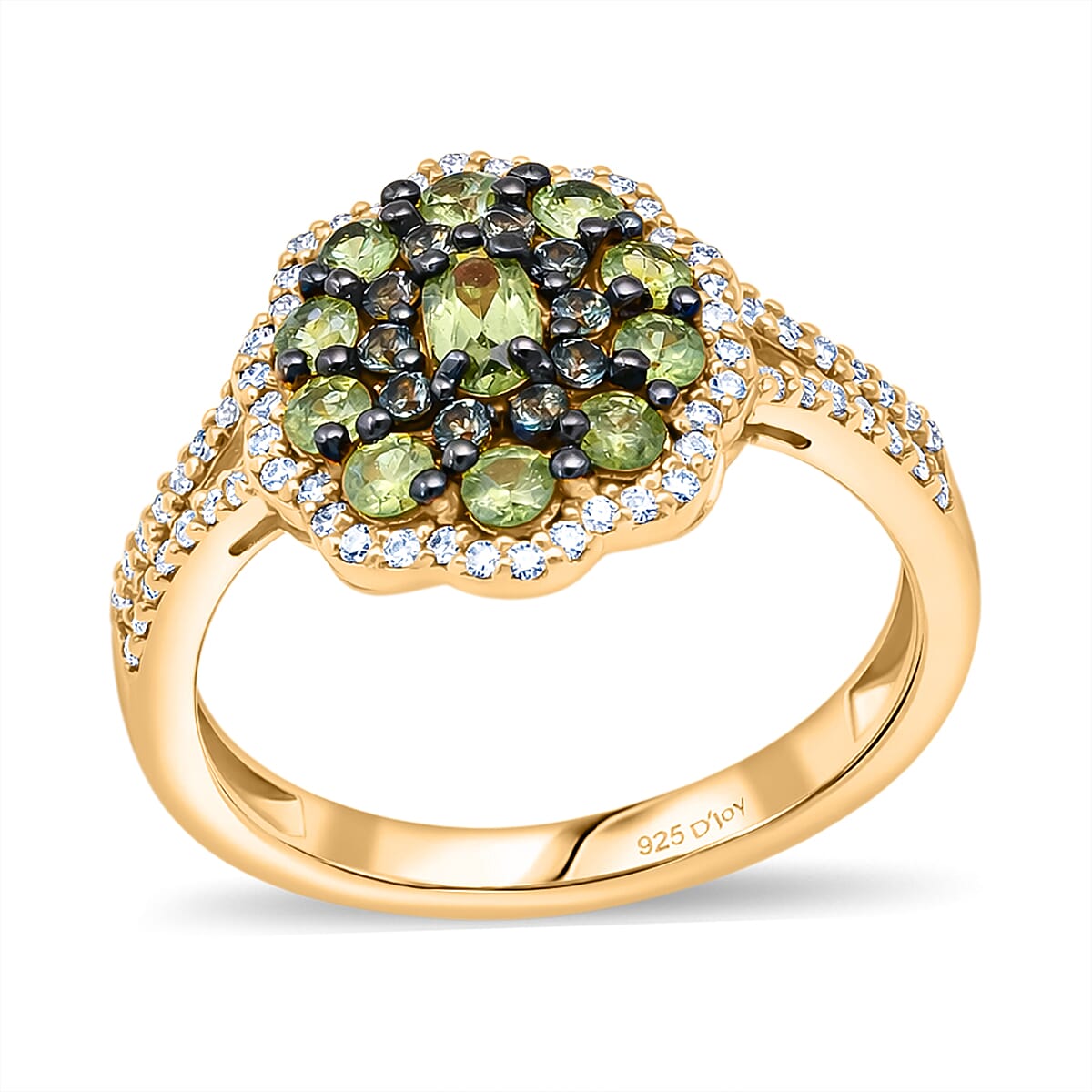 D'Joy Ambanja Demantoid Garnet and Multi Gemstone 1.65 ctw Greenfire Garden Ring in 18K Vermeil Yellow Gold Over Sterling Silver (Size 10.0)
