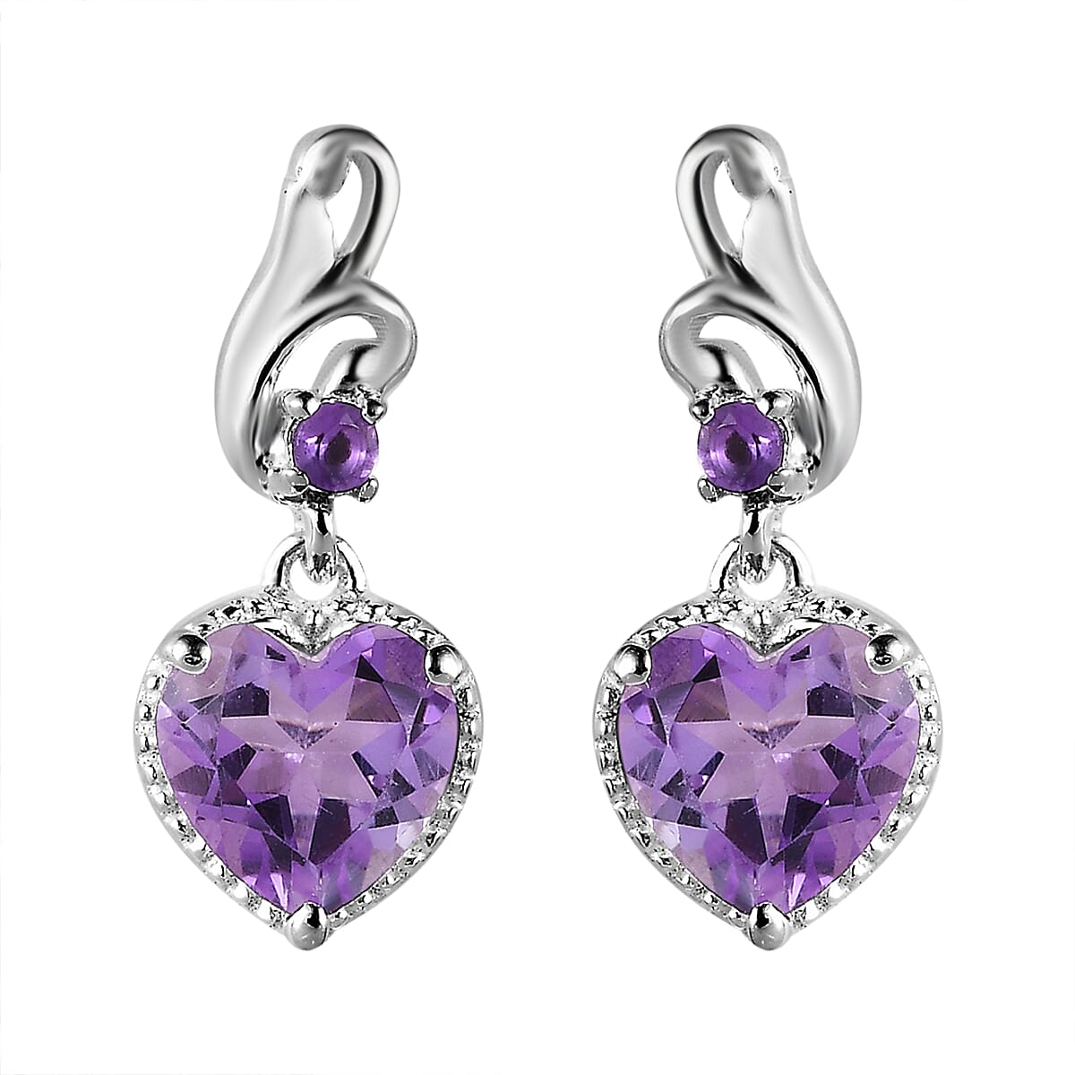 D'Joy Amethyst Heart Dangling Earrings in Sterling Silver 2.20 ctw