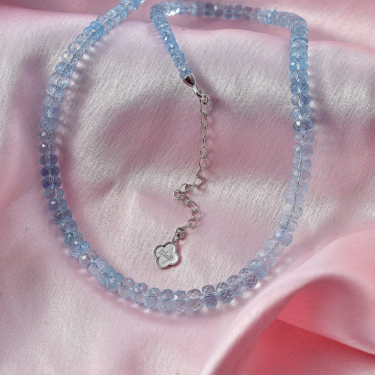 D'Joy Aquamarine Necklace (18-20 Inches) in Rhodium Over Sterling Silver (Del. in 7 - 10 days) 105.00 ctw