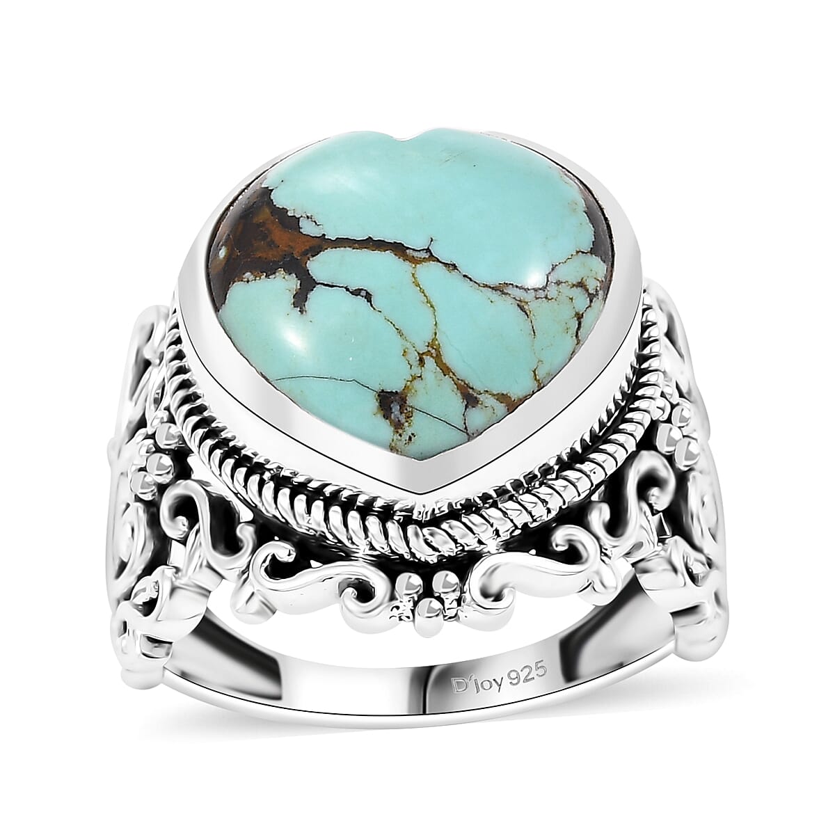 D'Joy Artisan Crafted Blue Horizon Turquoise 7.80 ctw Heart Ring in Black Oxidized Sterling Silver (Size 6.0)