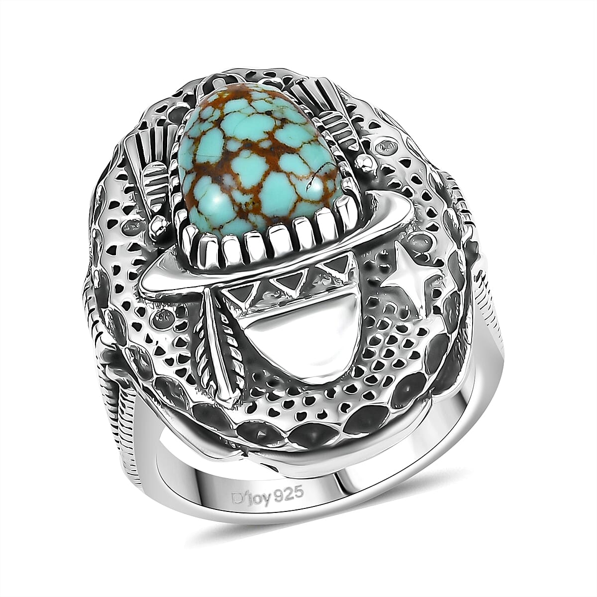 D'Joy Artisan Crafted Blue Moon Turquoise 2.50 ctw Cowboy Hat Ring in Black Oxidized Sterling Silver (Size 6.0)