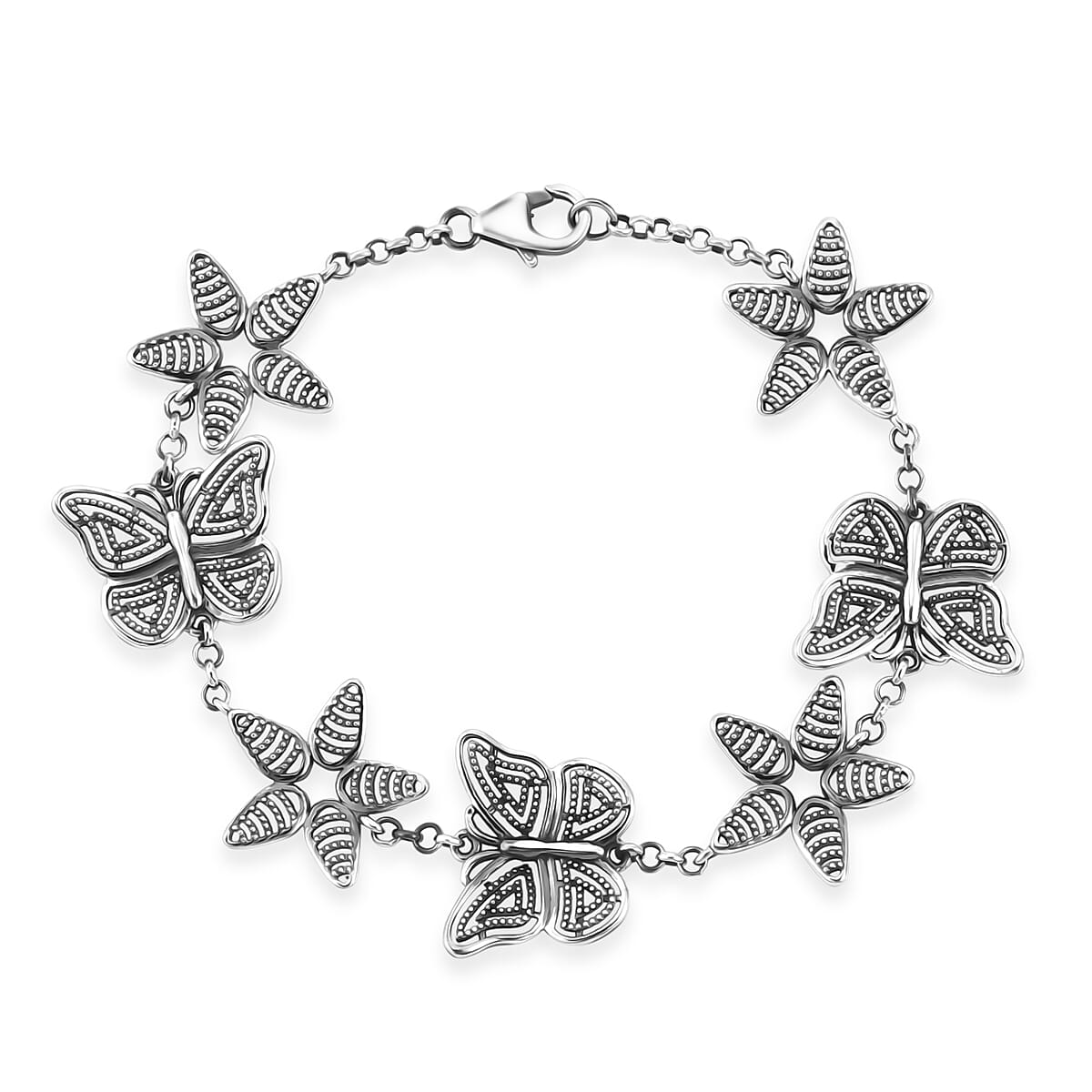 D'Joy Artisan Crafted Kanchanaburi Blue Sapphire Station Bracelet (Size - 7.25) Sterling Silver , Silver Wt. 11.26 g (7.25 In)