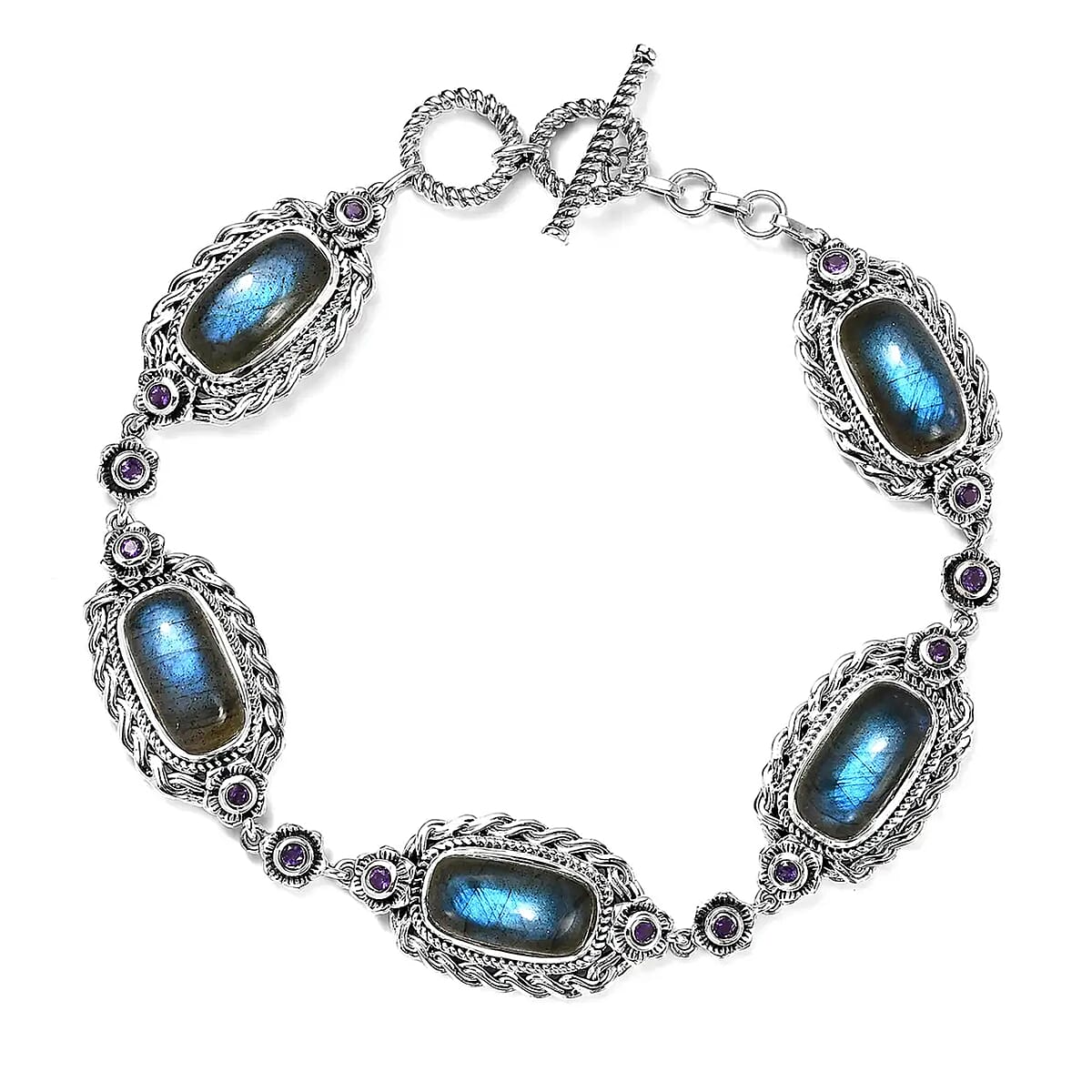 D'Joy Artisan Crafted Malagasy Labradorite and African Amethyst Toggle Clasp Bracelet in Sterling Silver (8.00 In) 26.00 ctw