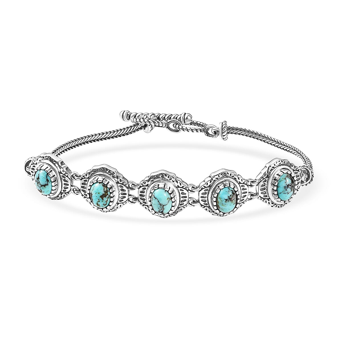 D'Joy Artisan Crafted Premium Blue Moon Turquoise 3.40 ctw Bracelet in Sterling Silver (7.25 In)