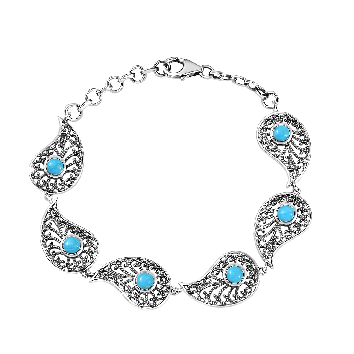 D'Joy Artisan Crafted Premium Sleeping Beauty Turquoise 1.85 ctw Bracelet in Sterling Silver (7.25 In)
