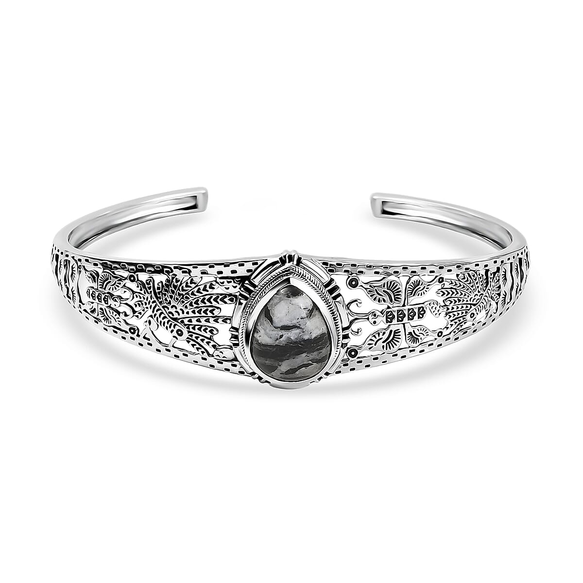 D'Joy Artisan Crafted Premium White Buffalo 8.60 ctw Cuff Bangle Bracelet in Sterling Silver (7.25 In)