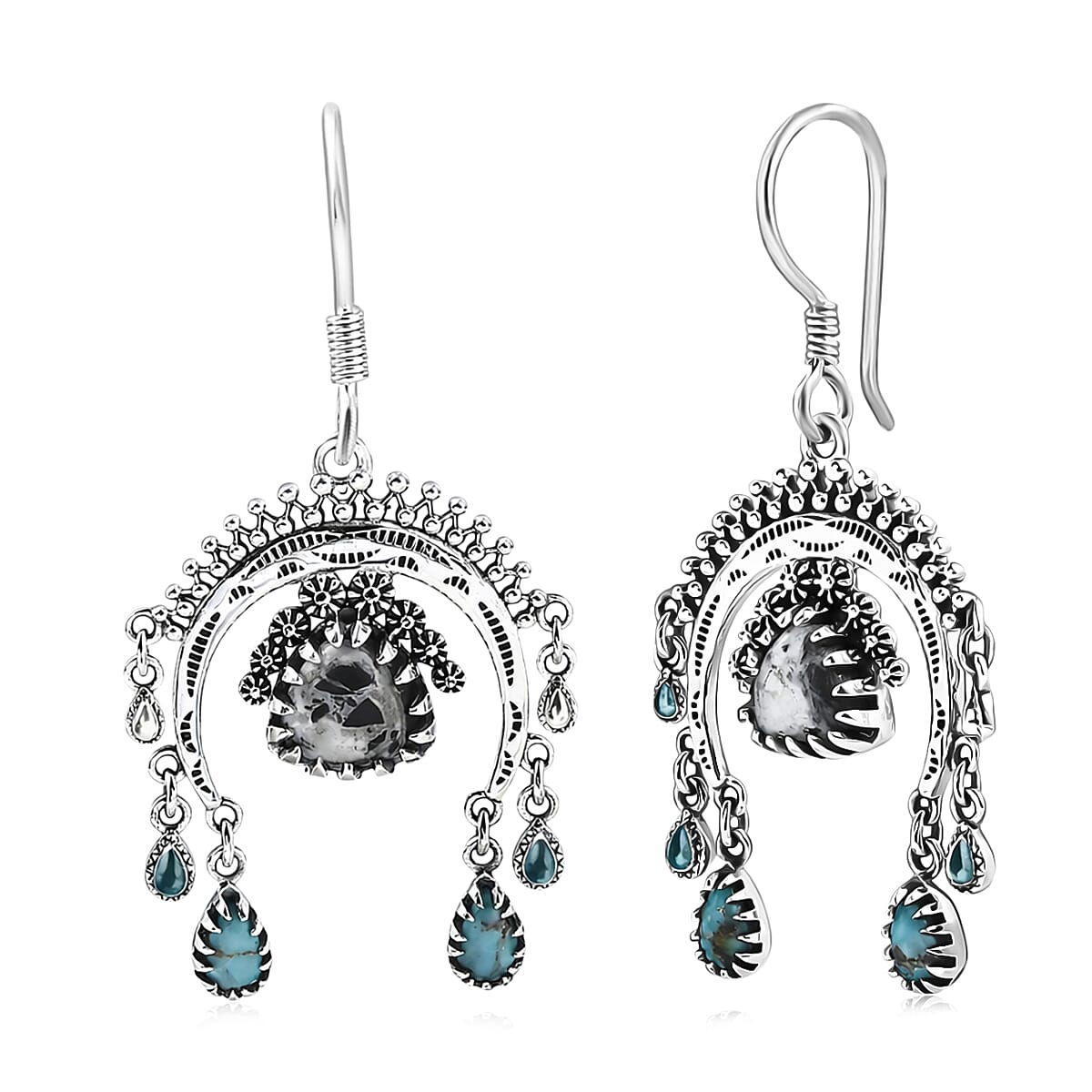 D'Joy Artisan Crafted Premium White Buffalo and Blue Moon Turquoise 4.20 ctw Earrings in Sterling Silver