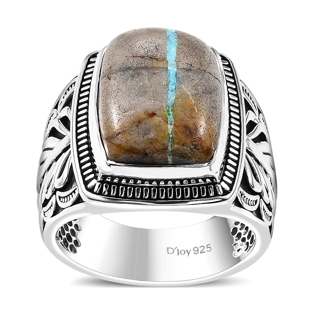 D'Joy Artisan Crafted Royston Ribbon Turquoise 10.00 ctw Feather Men's Ring in Black Oxidized Sterling Silver (Size 9.0)