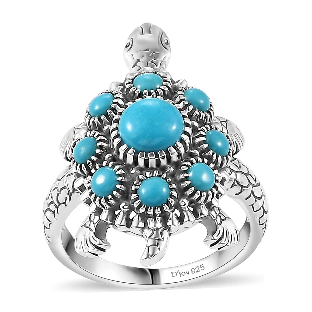 D'Joy Artisan Crafted Sleeping Beauty Turquoise 1.85 ctw Turtle Ring in Black Oxidized Sterling Silver (Size 5.0)