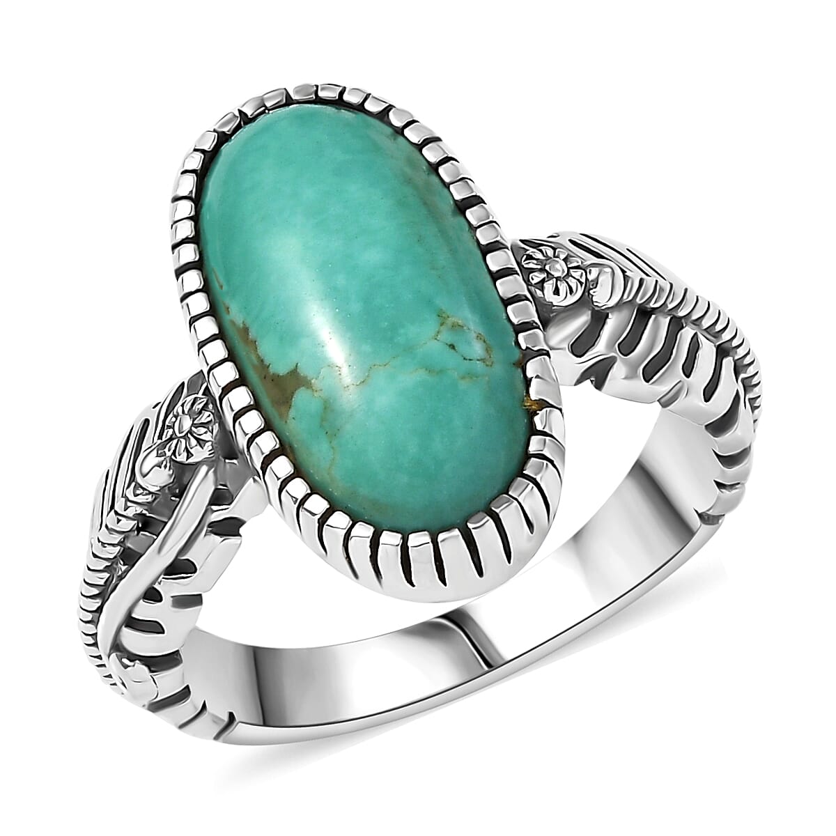 D'Joy Artisan Crafted Tahoe Nevada Turquoise Feather Ring in Sterling Silver 4.50 ctw (Size 9.0)
