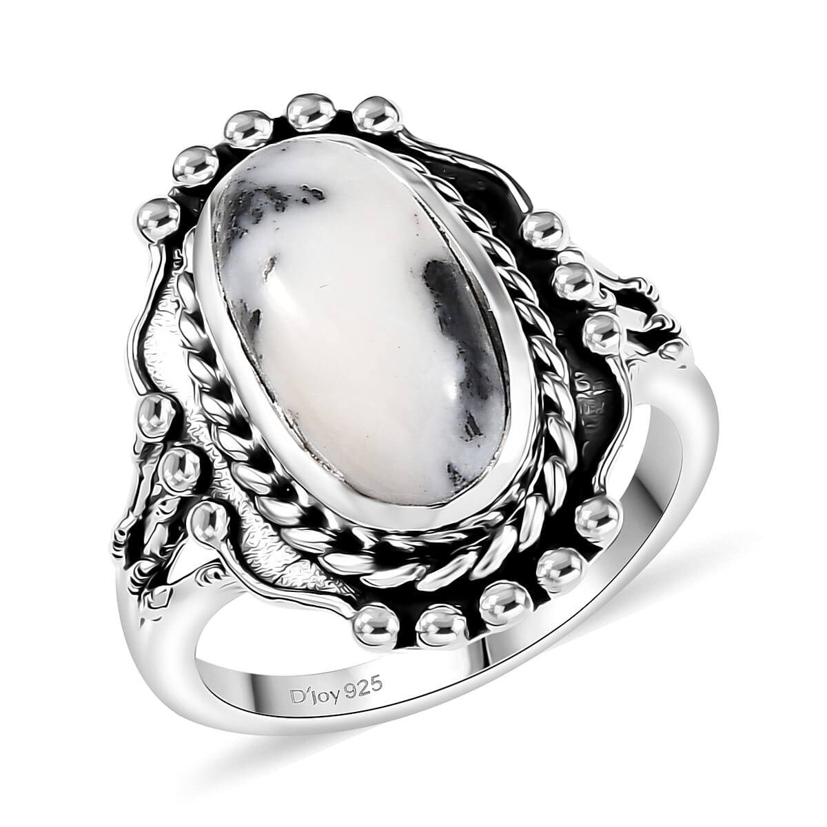 D’Joy Artisan Crafted White Buffalo 3.60 ctw Spirit Ring in Sterling Silver (Size 9.0)