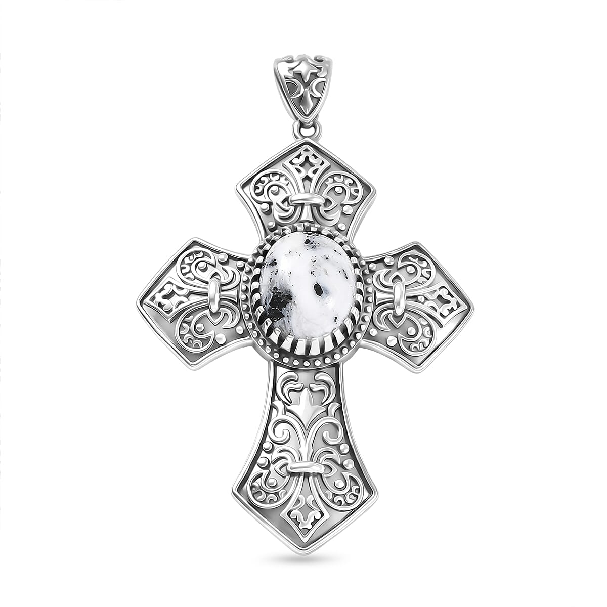 D'Joy Artisan Crafted White Buffalo 4.75 ctw Cross Pendant without Chain in Sterling Silver