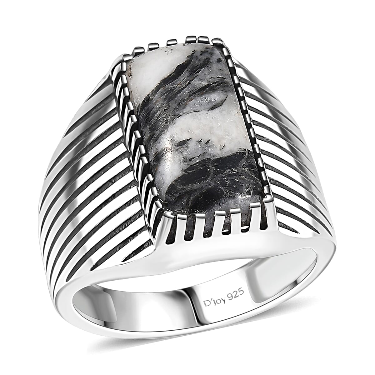 D'Joy Artisan Crafted White Buffalo 6.60 ctw Mens Ring in Black Oxidized Sterling Silver (Size 12.0)