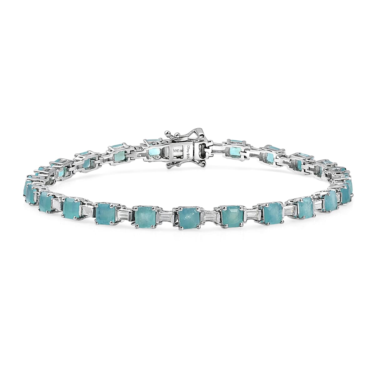 D'Joy Asscher Cut Grandidierite and Moissanite 9.15 ctw Linear Architecture Bracelet in Rhodium Over Sterling Silver (8.00 In)