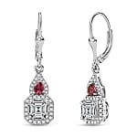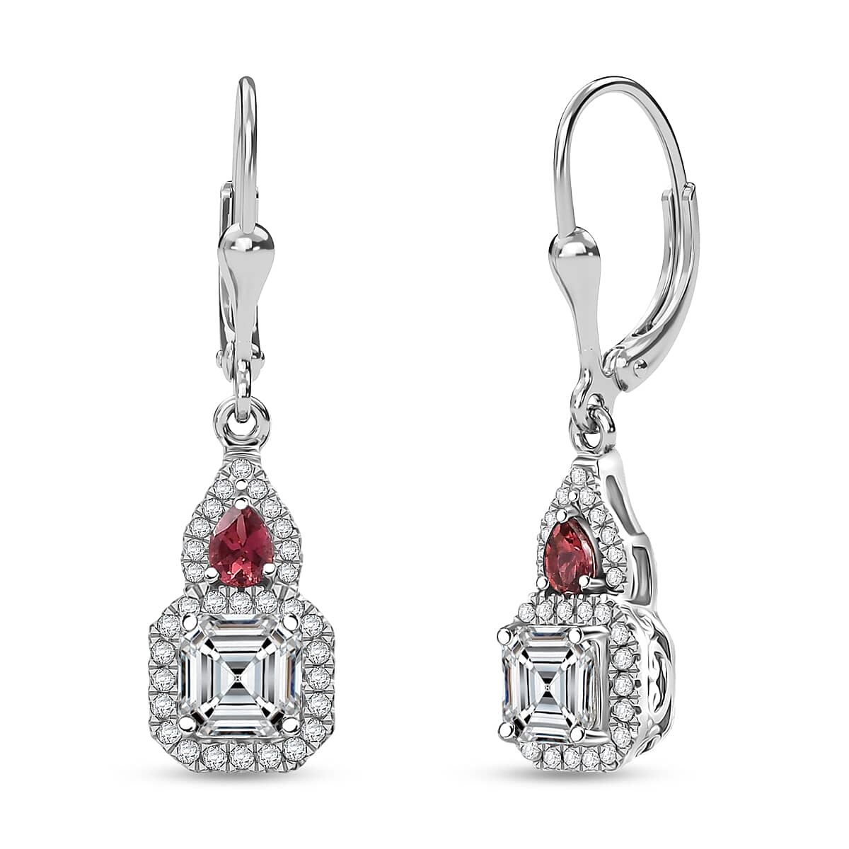 D'Joy Asscher Cut Moissanite, Ouro Fino Rubellite Earrings in Rhodium Over Sterling Silver 3.20 ctw