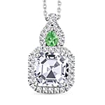 D'Joy Asscher Cut Moissanite, Tsavorite Garnet Pendant Necklace in Rhodium Over Sterling Silver 3.25 ctw (20 Inches)
