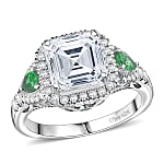 D'Joy Asscher Cut Moissanite, Tsavorite Garnet Ring in Rhodium Over Sterling Silver 3.75 ctw (Size 10.0)