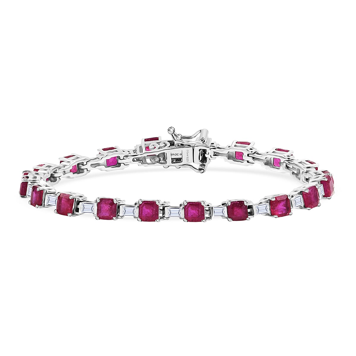 D'Joy Asscher Cut Niassa Ruby (FF) and Moissanite 13.85 ctw Linear Architecture Bracelet in Rhodium Over Sterling Silver (8.00 In)