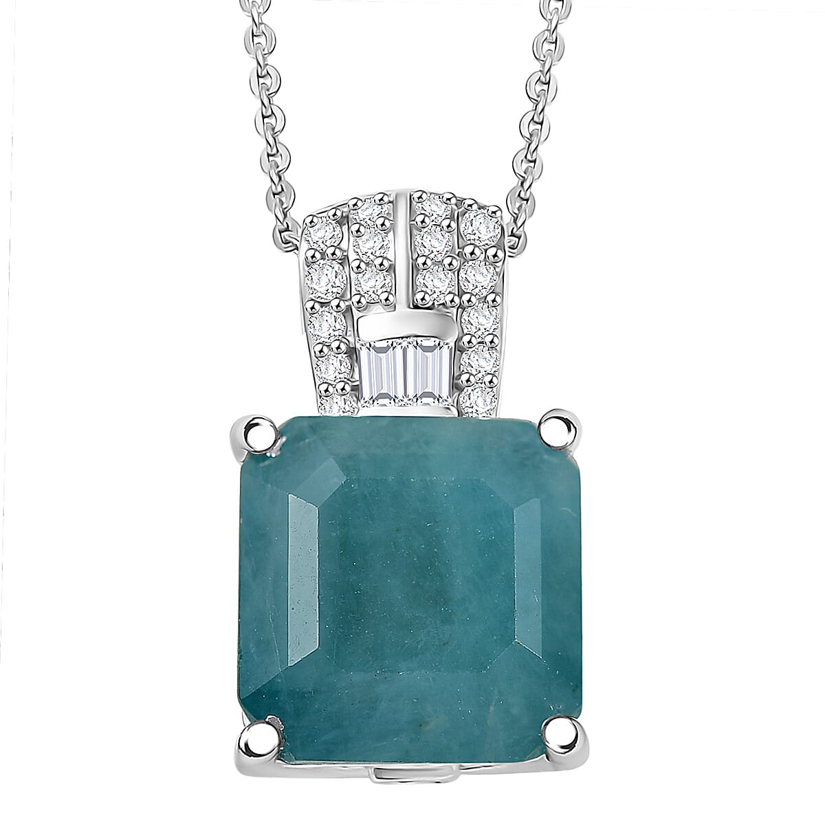 D'Joy Asscher Cut Premium Grandidierite and White Zircon 4.00 ctw Architectural Serenity Pendant Necklace in Rhodium Over Sterling Silver 20 Inches (Del. in 7-10 Days)