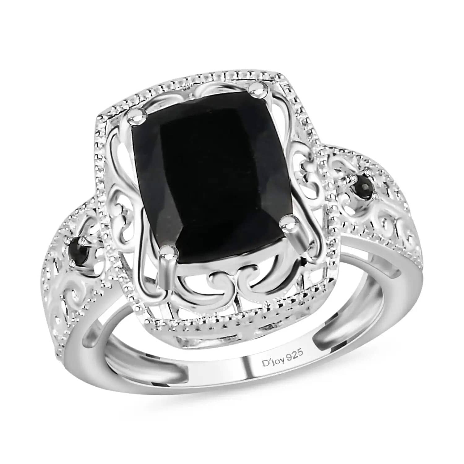 D'Joy Australian Black Tourmaline, Thai Black Spinel Ring in Sterling Silver 3.40 ctw (Size 7.0)