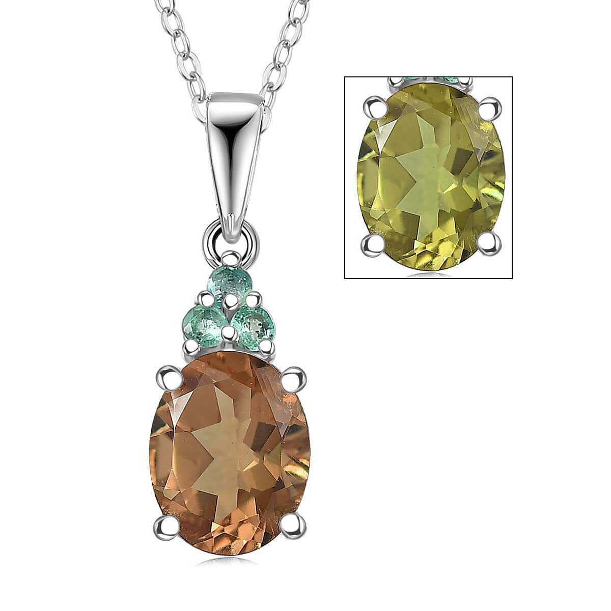 D'Joy Autumn Alexite and Kagem Zambian Emerald 2.00 ctw Oval Art Deco Pendant Necklace in Platinum Over Sterling Silver 20 Inches