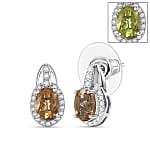 D'Joy Autumn Alexite and White Zircon 1.50 ctw Celestial Halo Earrings in Platinum Over Sterling Silver