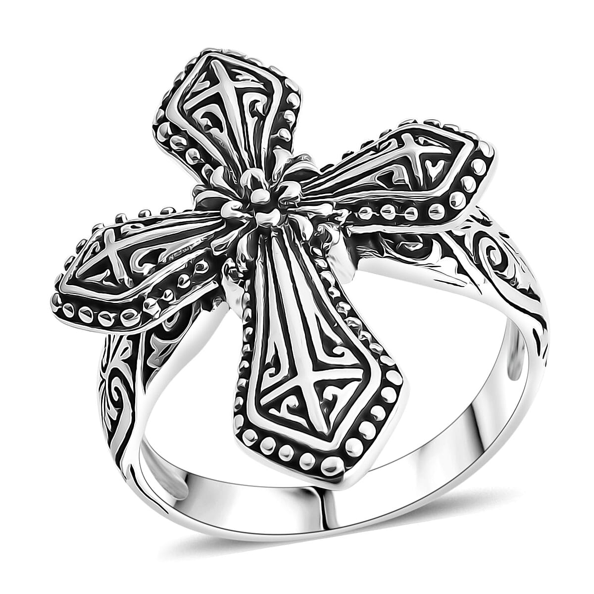 D'Joy Bali Legacy Cross Ring in Sterling Silver (Size 8.0) 6.40 Grams