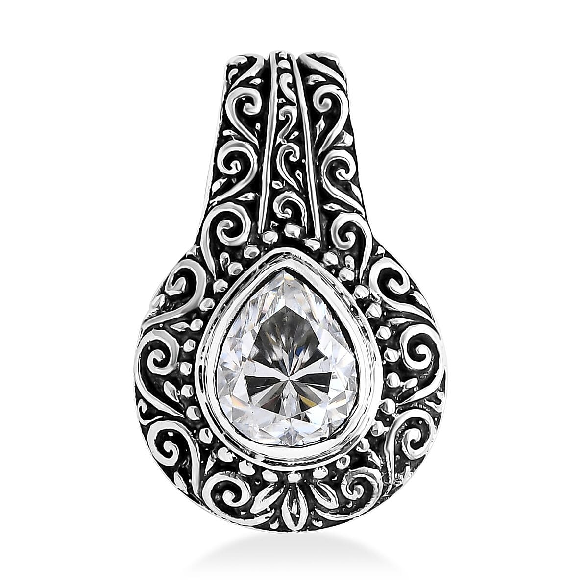 D'Joy Bali Legacy Moissanite Filigree Texture Pendant without Chain in Sterling Silver 2.50 ctw