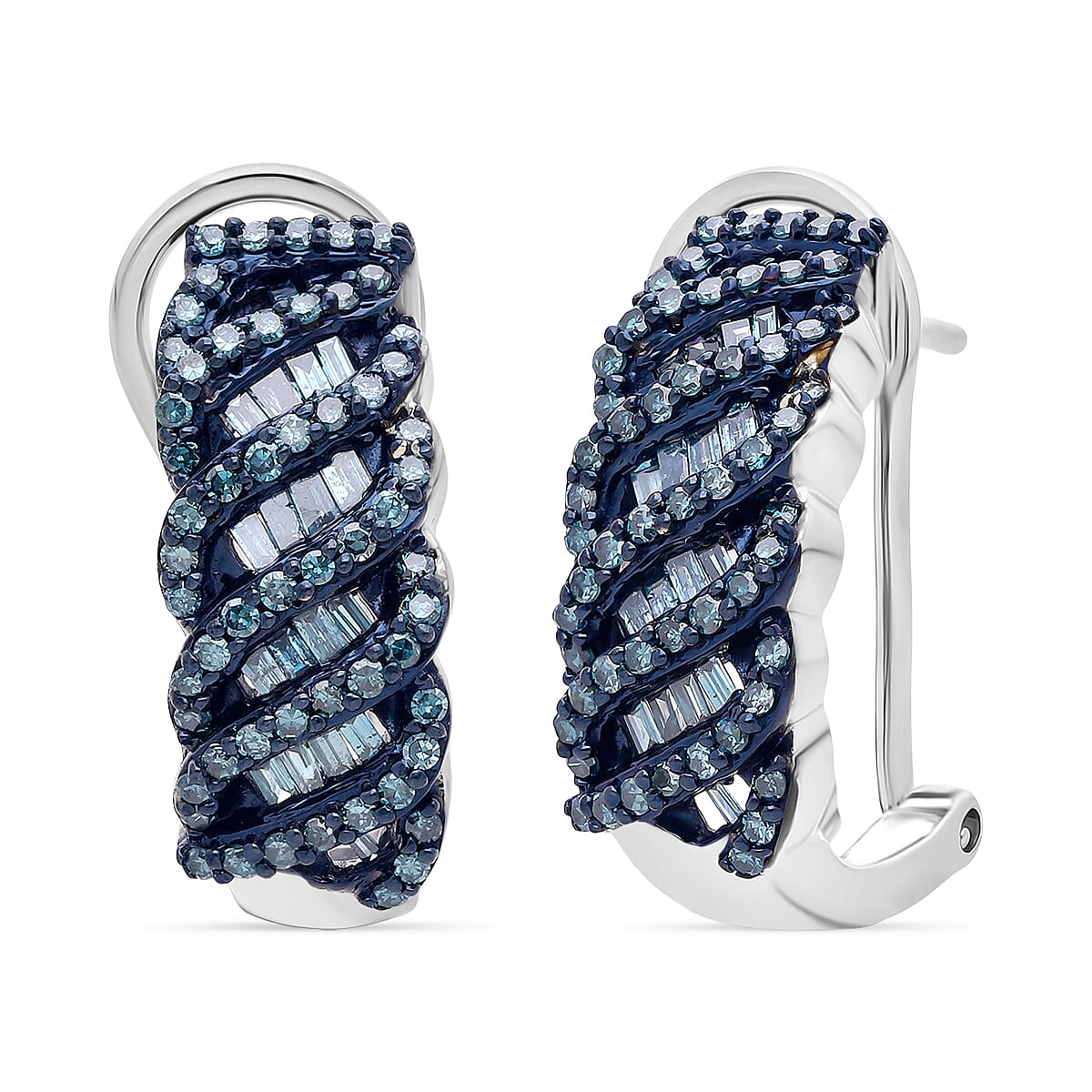 D'Joy Blue Diamond 1.00 ctw Eternal Weave Earrings in Rhodium Over Sterling Silver