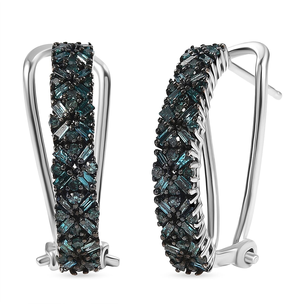 D'Joy Blue Diamond 1.00 ctw Hoop Earrings in Rhodium Over Sterling Silver