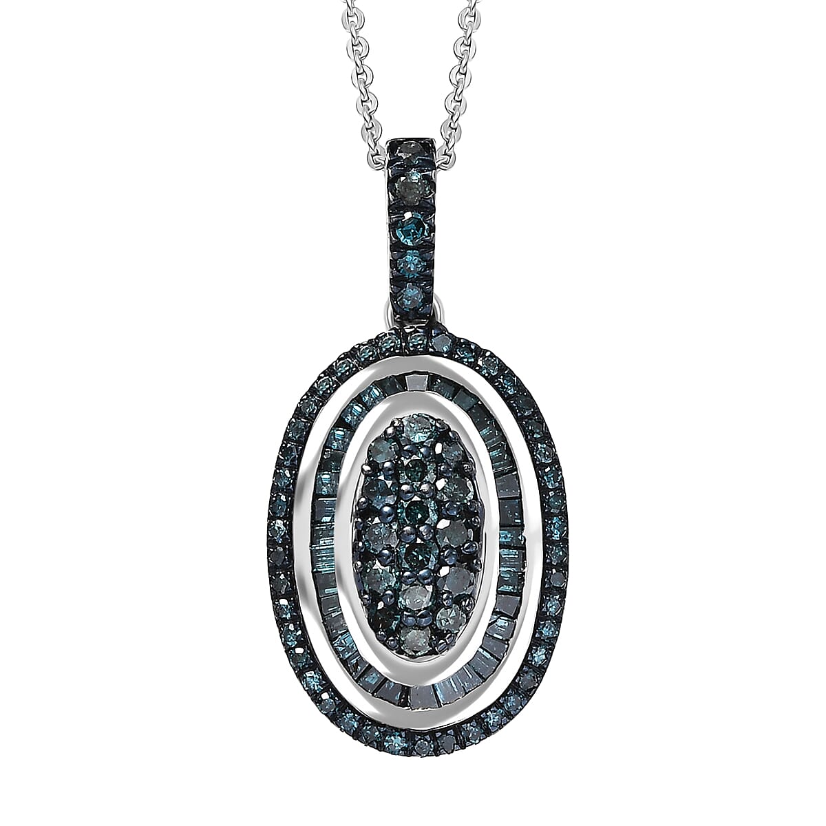 D'Joy Blue Diamond 1.00 ctw Pendant Necklace in Rhodium Over Sterling Silver 20 Inches