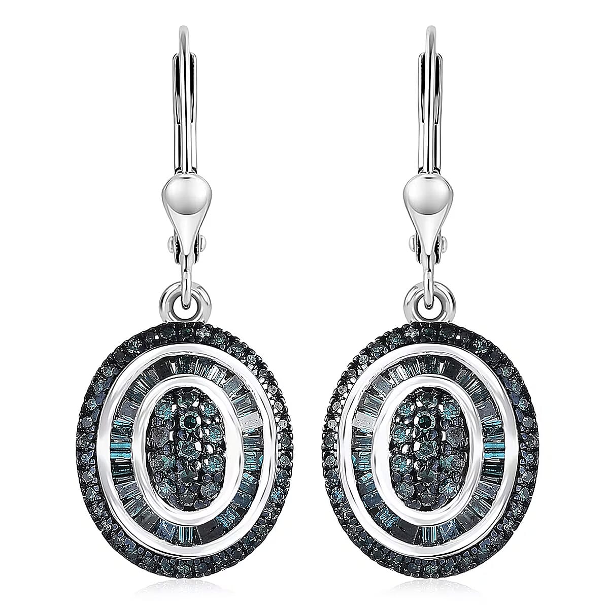 D'Joy Blue Diamond 1.00 ctw Royal Sunburst Earrings in Rhodium Over Sterling Silver