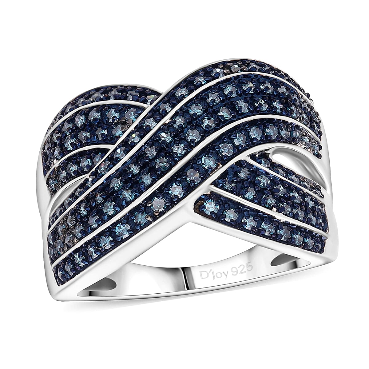 D’Joy Blue Diamond (IR) 0.75 ctw Crossover Bridge Ring in Rhodium Over Sterling Silver (Size 6.0)